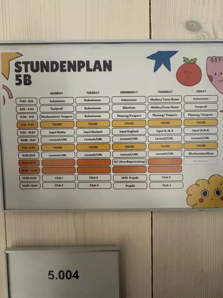 An den anderen beiden Tagen startet der Tag mit einer Doppelstunde Schwimmen oder dem Präventionsprogramm „Lions Quest“ und dem neuen Unterrichtsfach “Medienbildung”.